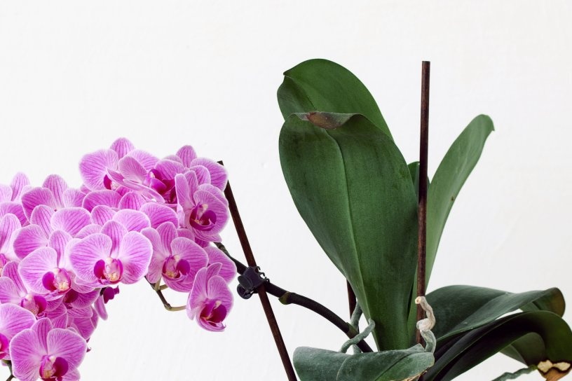 Неопитни орхидеи понякога пренебрегват факта, че преди цъфтежа, трябва незабавно да завържете стрелката с пъпките и да я насочите в правилната посока. При фаленопсис стрелката излиза изпод долния лист и може да продължи да расте успоредно на пода. Ако не бъде вързан навреме за опората, скоро ще се счупи поради теглото на пъпките и цветята. Опората се поставя в саксията веднага след появата на дръжката и я закрепете към опората с куки, които не пречат на по-нататъшното цъфтене на цветята. Такова фиксиране позволява не само да се намали стъблото на дръжката до нула, но и да се контролира посоката на нарастващия издънка.
