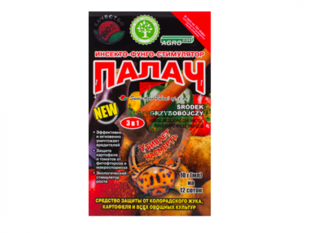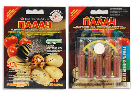 Препарат за колорадския бръмбар в Колорадо Палачът е надеждно средство за защита на селскостопанските растения от колорадския бръмбар и бъгове, всички породи и сортове. Лекарството се произвежда в опаковки от 5 ампули, всяка от които съдържа 2 g от лекарството под формата на водоразтворими гранули. Използва се за обработка на картофи, зеленчуци, овощни дървета, храсти и декоративни насаждения от цветя.