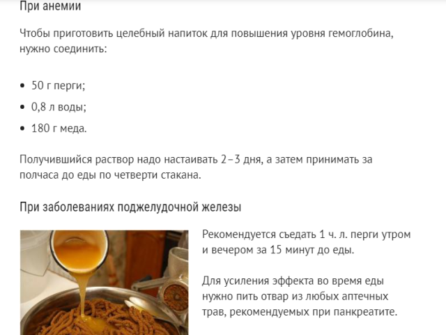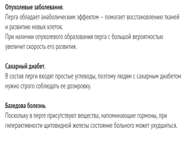 Перга помага за повишаване на апетита, така че ако сте на диета, не бива да използвате пчелен продукт, това ще доведе до остър копнеж към мазни храни.