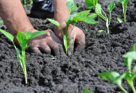 Нищо не трябва да расте до пипер; той „не го харесва“. Кладенците трябва да са добре разхлабени, влажни. Листовки на разсад не трябва да бъдат разположени високо над земята, 1,5-2 см ще бъдат достатъчни. В процеса на отглеждане тази култура изобщо не бива да се игнорира. Постоянно разхлабвайте дупките, поливайте и ги торете. Първата горна превръзка се прави при температура най-малко 20 g. През периода на активен живот растенията добре разхлабват почвата 4-5 пъти и след като се опушат. Това дава възможност да се насити с кислород и да се отстранят плевелите растения от почвата. Пиперът обича влагата, но има схема за поливане за нея:
