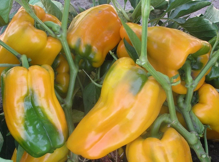 Плодовете с кубовидна форма, на етапа на техническата зрялост, имат зелен цвят, узрели чушки с ярко жълт цвят. Плодовете са доста големи, теглото им може да варира от 200 до 300 грама и силно зависи от мястото на засаждане. Корите са тънки, пулпата е месеста, сочна на вкус сладка и има горчивина. Плодовете имат четири камери с дебелина на стената около 8 мм. Чушките достигат дължина приблизително 18 см. От един храст се формират от 7 до 10 яйчника.