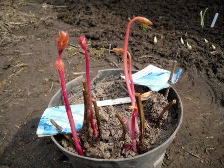 Препоръчва се да се подрязва дървовидният божур не през зимата, както обичайните сортове, а през пролетта.