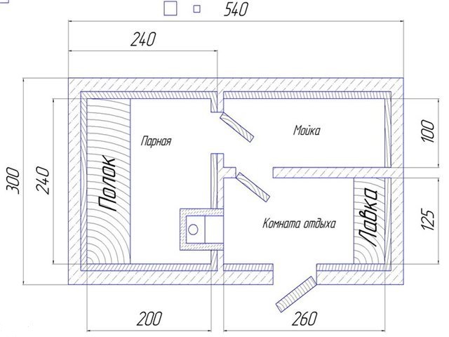В случай на малко пространство за строителство, тези помещения ще трябва да бъдат направени не толкова големи.От друга страна, ако планирате да реализирате проект за сауна, гарантирано ви е бързо затопляне на парната стая, просто трябва да разбиете главата си над вътрешното устройство и избора на подходящи материали.