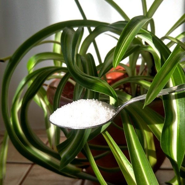 - Разпръснете на земята близо до кореновата система на растението 1 супена лъжица. лъжица захар. Поливайте го обилно.