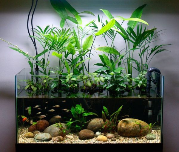 Ако в къщата има риба, тогава водата, в която живеят, може да бъде източник за стимулиране растежа на растенията. За да се използва, се отмива само през пролетта и през първата половина на лятото, когато започва активен растеж на листата и издънките. Напоявайте почвата с аквариумна вода само 1 път на цъфтеж. При прекомерно подхранване почвата ще стане кисела или зелена.