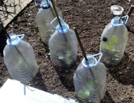Саждите под бутилката са не само зеле. Взимам не 1,5 литра, а големи - 5 литра. Те добре защитават разсада от студа, той расте по-бързо и не се разболява.