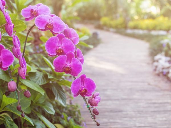 За градинска красота те избират тихо място без течения, ярка светлина, която да отстъпи място на частична сянка. Ако сайтът е отворен и слънцето гори цял ден, тогава трябва да направите навес или подслон, така че орхидеите да не изгорят от слънцето.