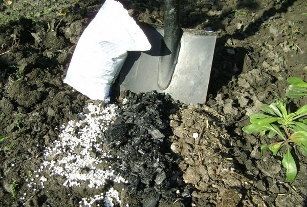 - Преди качване на борда. Гранулите се прилагат в суха форма, без да се разреждат с вода, в противен случай полезните вещества могат да се измият от почвата. На мястото на засаждане на всеки храст се изсипват 8-10 грама вещество. Гранулите се смесват със земята за равномерно разпределение на активното вещество в почвата.