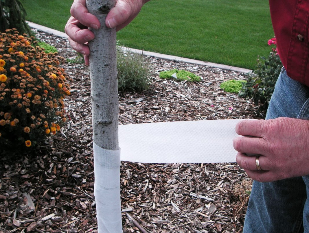 Градинските дървета и храсти много лесно се нападат от различни малки гризачи и зайци. За предпазни цели багажникът е обвит в материя. Например, това може да е изрусяване или стар парцал с покривен материал.