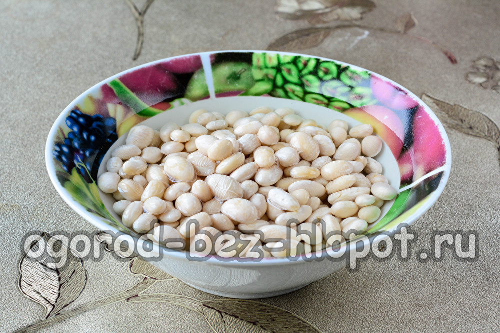 През нощта или предварително за 5-6 часа накиснете боба в обикновена вода. Напълнете напълно, така че водата да покрие всички зърна отгоре. През нощта почти цялата вода се абсорбира и бобът се вари много по-бързо. Измиваме боба няколко пъти и ако водата все още остане, след това я отцеждаме.