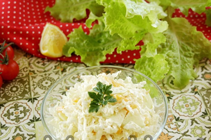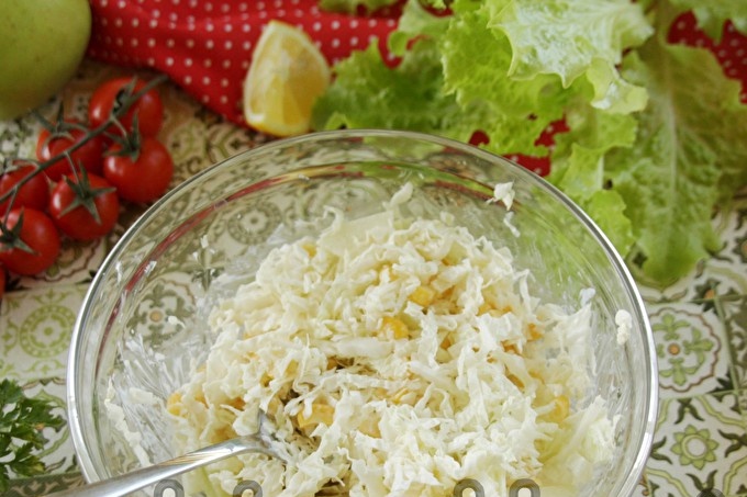 Как да си направите пекинска салата от зеле с царевица и ябълка