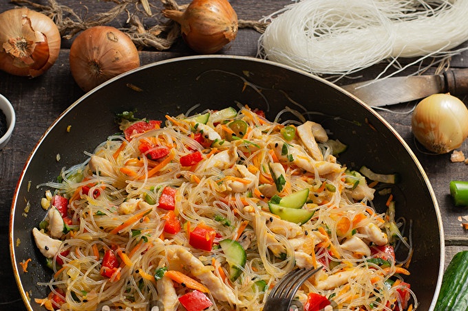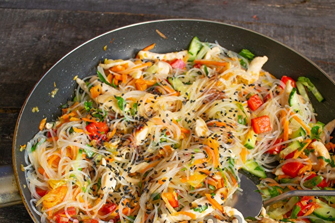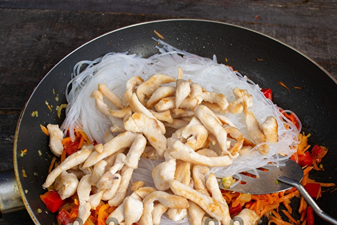 Фунчоза - оризовата юфка (стъклената юфка) не изисква готвене, достатъчно е просто да изсипете вряща вода и да я оставите във вряща вода за 10 минути.