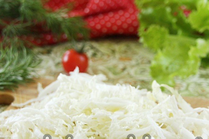 Нарязваме ситно пекинското зеле.