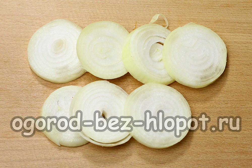 Лукови пръстени, нарязани на тънко или не много - по ваша преценка.