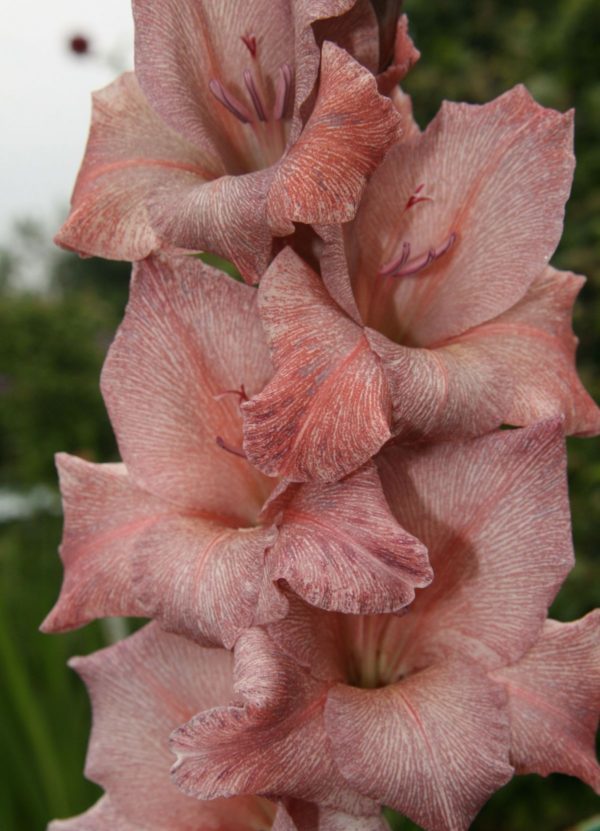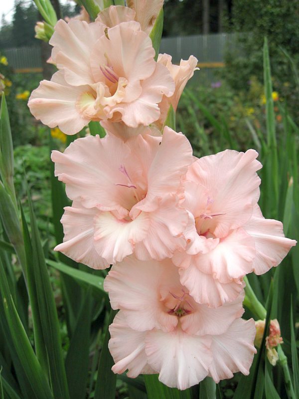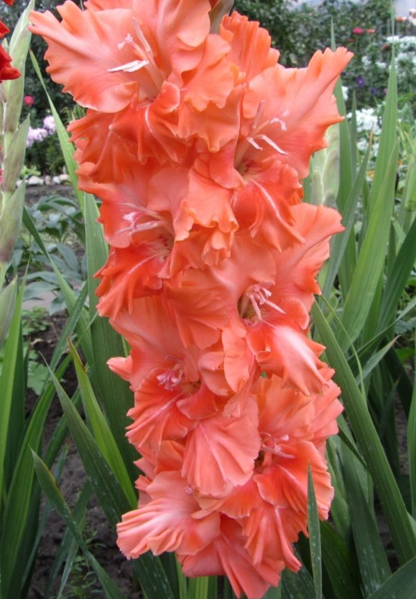 - Сьомговите гладиоли са много популярни поради деликатното си, приятно за око оцветяване. Сортът Голямата херцогиня Елизабет е носител на награди на международни изложби. Силно гофрираните венчелистчета с нежен цвят от сьомга имат златисто петънце, сякаш от вътрешната страна на цветето греят малки слънца.