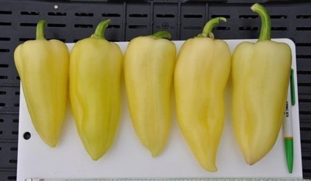 На пръв поглед този сорт не се различава от роднините си, освен може би с по-съкратена и закръглена форма. Но просто трябва да изчакате състоянието на техническа зрялост. През този период той става почти снежнобял и постепенно променя цвета си в оранжев, а след това в червен. Теглото на един пипер е около 150 g.