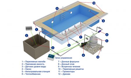 Ако не оставите необходимия брой ипотеки (в съответствие с проекта), в крайна сметка част от оборудването (фонтан, филтър или атракция) няма да работи. Има изход. Необходимо е да се забият допълнителни дупки, но това е изпълнено с появата на пукнатини и нарушение на хидроизолацията.