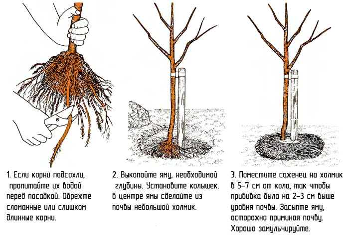За да засадите правилно ябълково дърво през пролетта, трябва да следвате този план: