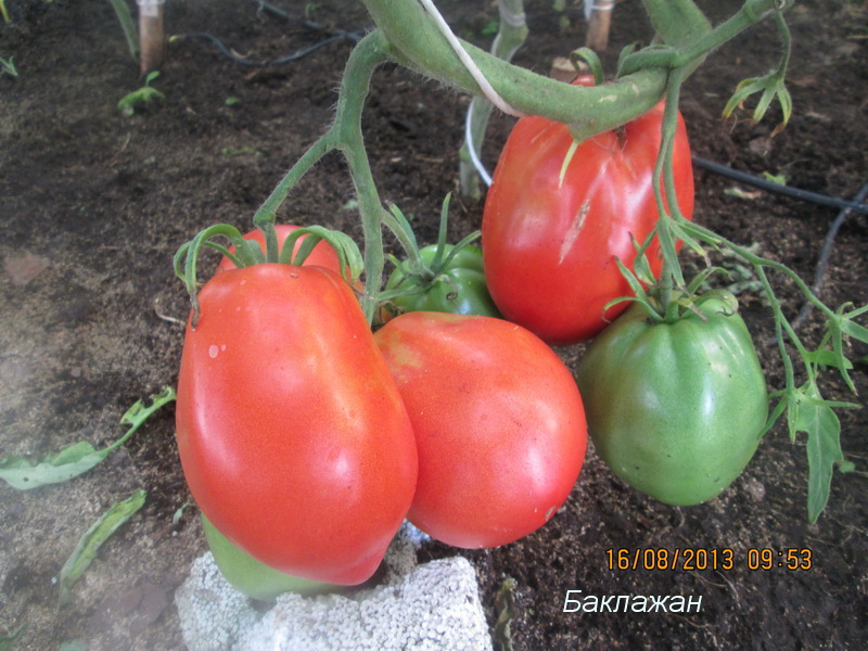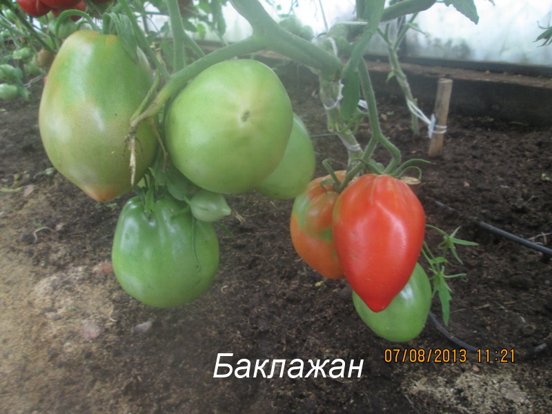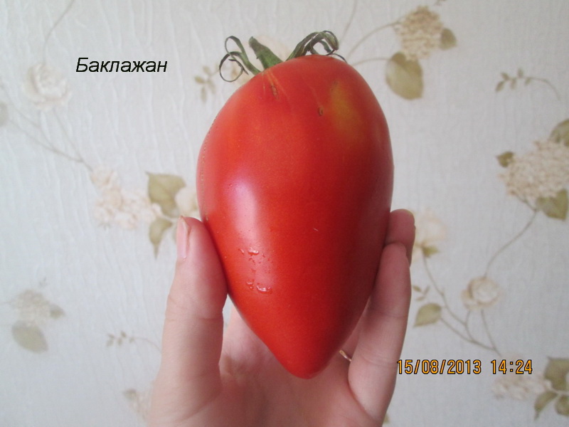 Доматът "Патладжан" се отглежда за първи път. Растението расте високо, около 1,5 м., Засажда разсад в открита земя. Последваха много плодове, но за да се каже, че стъблото е било просто осеяно с плодове, не. Доматите са едри, месести и сладки. По своята сладост те ще се състезават дори с розови домати. Срокът им на годност е среден, узрял лежах около седмица и половина, след това някои плодове започнаха да изтичат. Доволен съм от разнообразието, съветвам приятелите и съседите си.