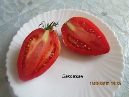 Доматът от патладжан е подходящ за прясна консумация, преработка в сок, готвене лечо, различни сосове. Растението има стабилен имунитет, но лошите метеорологични условия могат да намалят производителността и да повлияят на общото състояние на растението. Разсадът се засява 60-65 дни преди планираното засаждане в открита или затворена земя.