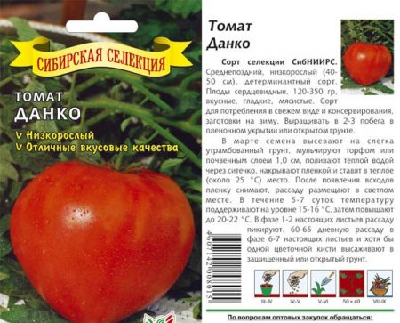Данко докара животновъди на Русия. Принадлежи към сортовете от сибирската селекция. Благодарение на това доматът перфектно понася ниските температури, както и липсата на слънчева светлина. И също така се различава по това, че растението е непретенциозно към състава на почвата и температурните колебания.