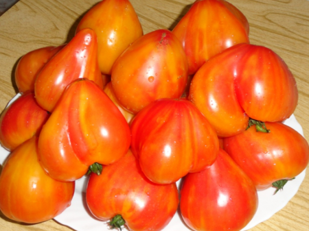 Добър за сандвичи, сладък сос, гарнитури. Той е популярен на пазара на фермерите. Развъден от Джеф Доусън, сортът е станал популярен в цял свят. Това е идентичен сорт, при който плодовете се различават по характерната си форма. Доматите имат месеста плът с червен център. Страхотен аромат, добре балансиран.