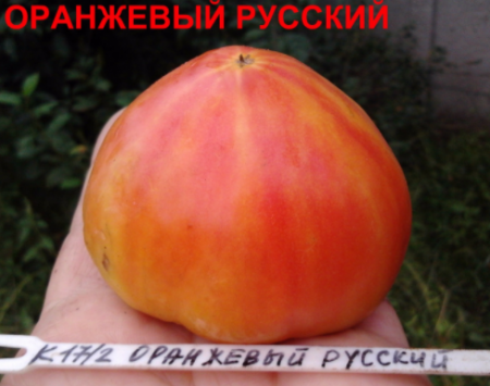 Най-красивият от два цветни домата, нито един домат може да се сравни по атрактивен външен вид и невероятен вкус с портокал от Русия. Алтернативното име за този сорт е Orange Russian. Има приятен външен вид, което ви позволява да отглеждате домат за продажби. Сортът узрява и е готов за употреба на 75-ия ден след разсаждане в открита земя.