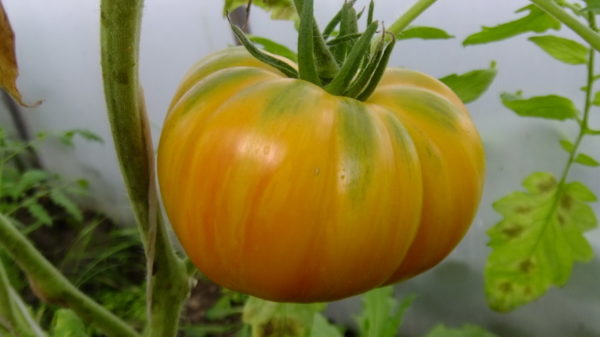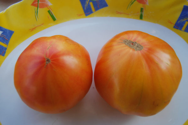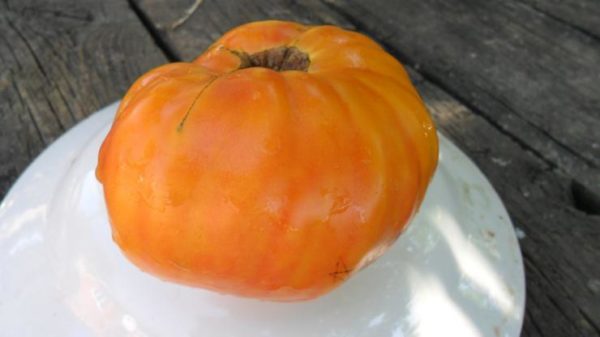 - плодовете са едри, тегло от 200 до 400 г, заоблени рамена, стават деформирани, когато достигнат големи размери;