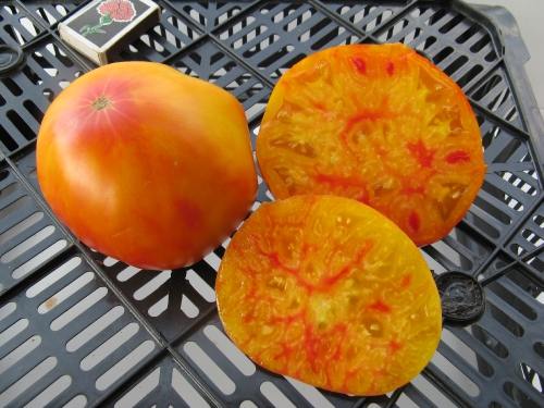 „Предпочитам малки и спретнати домати, но вкусът на баба на жълто-розовото на Вини е толкова прекрасен, че не можах да устоя и засадих няколко храсти в оранжерията. Никога не съм съжалявал за решението. Реколта щедра, висококачествена, събра толкова много плодове, че трябваше да правя всякакви сосове, за да не изчезнат доматите. "