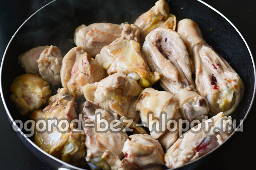 Пилешката каша се готви бързо, върви добре със зеленчуците. Ако имате крака или крила, можете да ги използвате и за задушаване. По желание предварително мариновайте месото в подправки, с добавяне на малко количество слънчогледово масло и приготвена горчица от буркани. Не се страхувайте, че пилето ще стане пикантно или горчиво. След завършване на термичната обработка, плътта става ароматна и много сочна, с лек сладникав вкус.