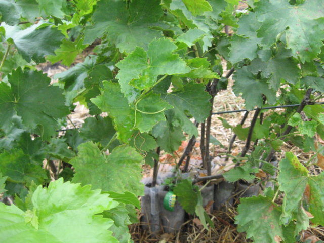 [sc name = "info-hand" text = "За 1 година от засаждането градинарите препоръчват да не извършват есенно подрязване на пасинки и да оставят всички мигли - бъдещият студ и затрудненията в климатичните промени ще помогнат да се идентифицират най-силните и жизнеспособни издънки на гроздето."]