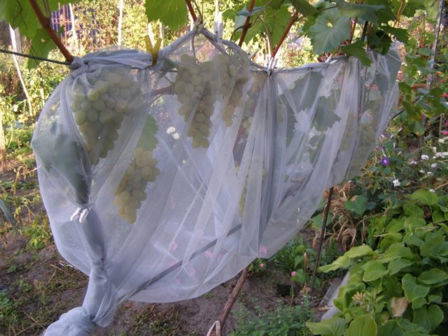 Изградете рамка от импровизирани материали и издърпайте върху нея пластмасов филм. В същото време краищата на заслона за грозде остават отворени за вентилация, докато постоянно студено време не достигне не по-високо от -5 градуса. Вместо филм все по-често се използват нетъкани материали, които не се нуждаят от допълнителна, твърда основа.
