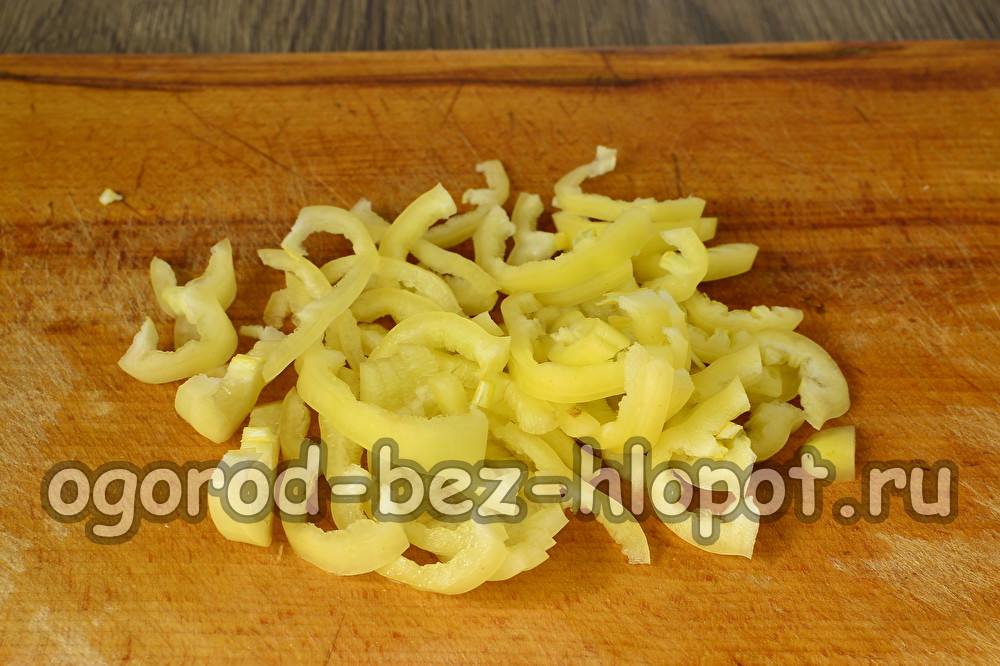 Сладък пипер, нарязан на тънки филийки.
