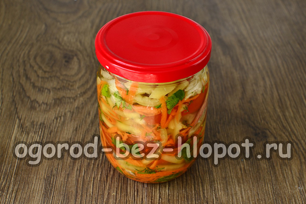 Продължаваме да зареждаме само с хладилник, но не повече от една година. Зеленчуците трябва да се поставят в ястието няколко минути преди да бъдат приготвени. Това е универсален детайл, който ще пасне на абсолютно всяко ястие. По желание можете да модифицирате рецептата, съобразявайки се с вашия вкус. Например, не можете да слагате копър зеленина или да добавите малко бяло зеле. Но си струва да запомните, че детайлът вече е доста солен!