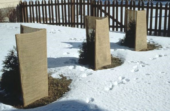 приемлив пристанищни иглолистни дървета и полиетилен, различни многогодишни филми. В този случай е необходимо да се изгради рамка около багажника. Такива материали не са пряко закрепени към клоните, тъй като неизбежно е необходимо стареенето и в бъдеще гниенето на иглите.