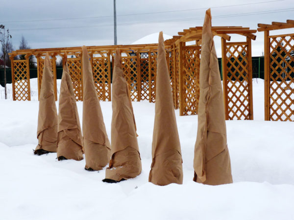В северните райони е необходимо да се изолира цялото дърво, включително големи клони, преди края на октомври. Първият слой подслон на корените трябва да бъде укрепен с тежки смърчови клони или не твърде дебели дъски. Освен това, снегът се заравя в кореновия кръг. Багажникът е изолиран значително, на няколко слоя.