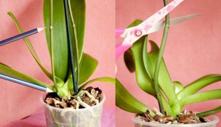 След това, като върхът е подрязан, може да започне процесът на покълване на спящи пъпки. Това се случва около три месеца след завършването на цъфтежа, понякога и по-рано. Но, отново, това не винаги се случва. Понякога отрязано стъбло на цветя стои известно време и след това изсъхва. Ето защо, ако искате да получите по-рано цъфтяща фаленопсис, трябва да премахнете старите дръжки.