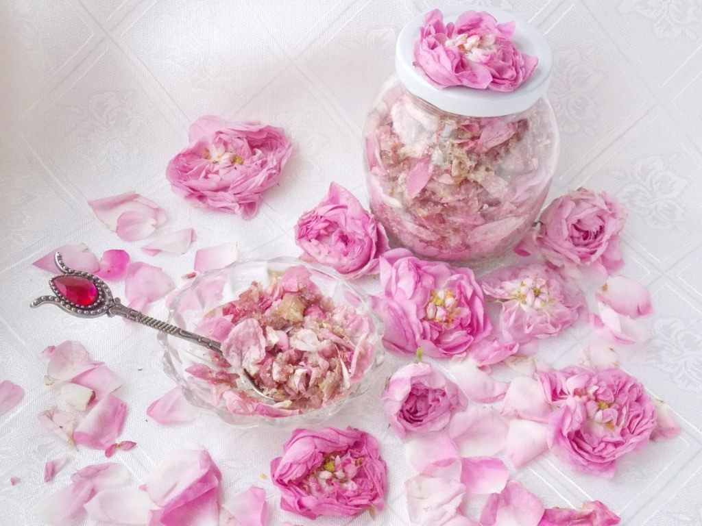 Поставете розовите листенца в чиста купа и смилайте с чаша захар и половин малка лъжица лимони (което е необходимо за запазване на цвета). Поставете приготвената смес на студено за няколко часа.