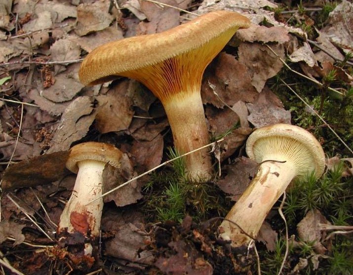 На снимка 1 и всички 3 видеоклипа - смъртоносна отровна гъба - Paxillus involuted (тънка свиня). Тънките свински токсини се натрупват при всяка следваща употреба на тази гъбичка, като в крайна сметка предизвикват автоимунна реакция. Унищожаването на червените кръвни клетки, хемолитичната анемия и бъбречната недостатъчност. Тънката прасе съдържа феноли, които могат да унищожат хромозомите. Освен това гъбата натрупва изотопи на цезий и мед. Накисването и кипенето многократно не унищожават токсините на тънката свиня. Гъбата е забранена за продажба от 1981 г. Дебелото прасе (Tapinella atromentosa) - условно годни за консумация гъби, не е представено на снимката на статията. Тя се различава от прасе в тънък кафяв кадифен крак и светли плочи. Маринованите гъби в буркан не са снимки, които изглеждат като прасета - млекари, най-вероятно розови гърла (Lactarius torminosus).