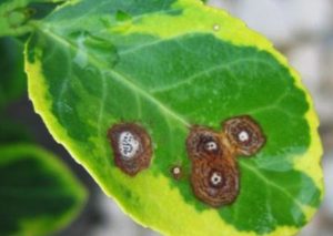 Също така е много опасно заболяване, което се проявява на гърба на платиновия лист под формата на петна, които водят до загуба на формата на листата, изсъхването и падането им. В същото време плодовете започват да се мръщят и също отпадат.