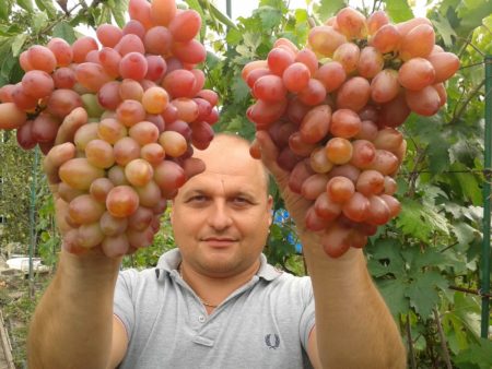 Хибридното растение даде невероятни едри плодове, които приличаха на пластмасова манекенка. Съдейки по описанието на сорта и разглеждайки снимката, гроздовият храст има много предимства. Отзивите на градинарите твърдят, че в северната част на страната растението няма да даде желаната реколта.