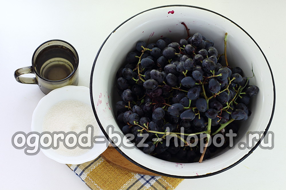 Различни сортове грозде са подходящи за готвене. Можете да използвате един сорт или да смесите няколко, за да получите още по-богат вкус, цвят и аромат. Рецептата показва теглото на горски плодове, отстранени от куп.