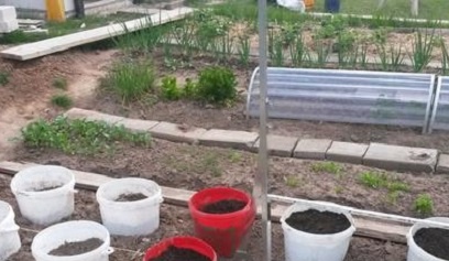 За затопляне на почвата в кофи е необходимо по-малко време, отколкото за по-голям обем в оранжерии и в легла. Засаждането на домати в отделни контейнери може да започне през май, когато нощната температура не падне под нулата.