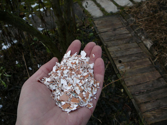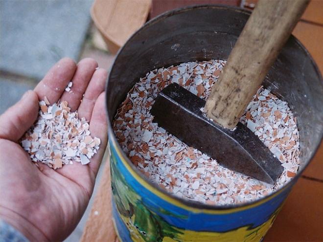 - Използвайте големи фрагменти. Колкото по-фина е фракцията на суровините, толкова повече микроелементи ще бъдат на разположение на растенията. В идеалния случай черупката трябва да се натроши на прах.