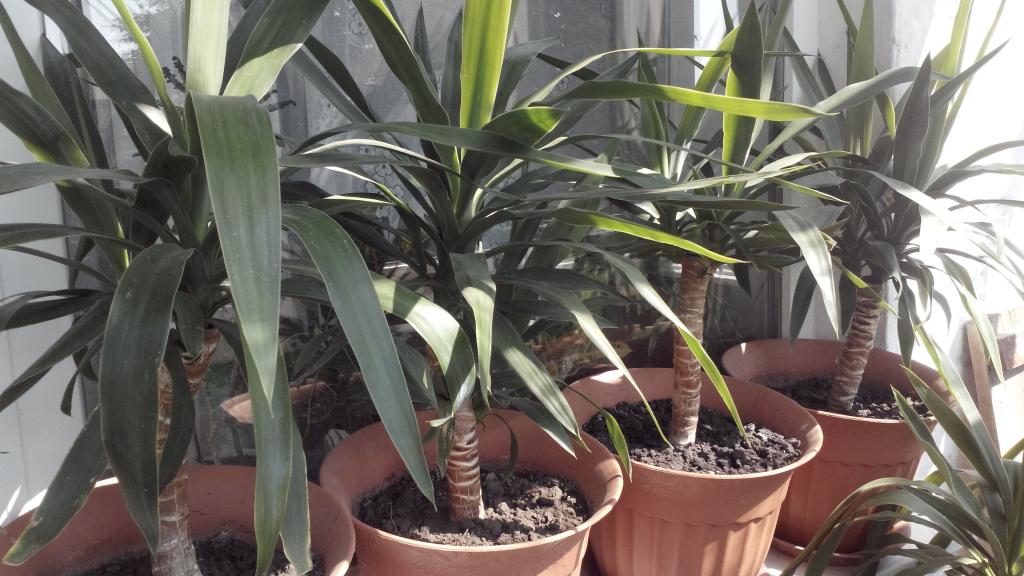 Юка резници - Преди да вкоренят части от стъблото в пясъка, сегментите трябва да бъдат поставени в разтвор на вода и стимулатор на растежа за 2-3 дни. След това стъблата трябва да се поставят хоризонтално във влажна почва на дълбочина не повече от 5 см. Поддържайте почвата влажна, докато расте цветето. С появата на първите листа поливането трябва да се намали. Засаждането в отделни саксии може да се извърши, когато всяко стъбло има свои корени и листа. Те се появяват след 1-2 месеца.