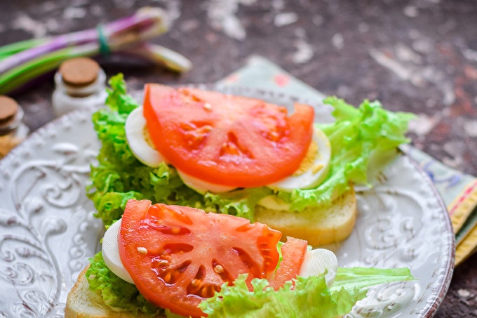 Вкусна, проста, бърза, достъпна за всички - сандвичи с домати и яйца, всеки ще хареса рецептата. Вземете резените от прясна вкусна бяла хляб като основа, добавете пресни листа от маруля, сочен сладък домат, яйце - ще се съгласите, дори на този етап можете да разберете, че сандвичите са вкусни.
