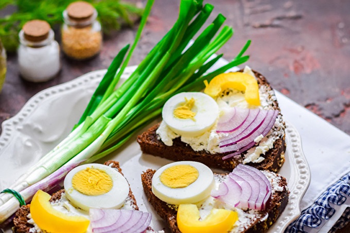 Сварете пиленото яйце - 10 минути в подсолена вода, след като яйцето се охлади и обелете, нарязани на плочи и разпределете яйцето върху сандвичите, добавете и малко парче сладък пипер.