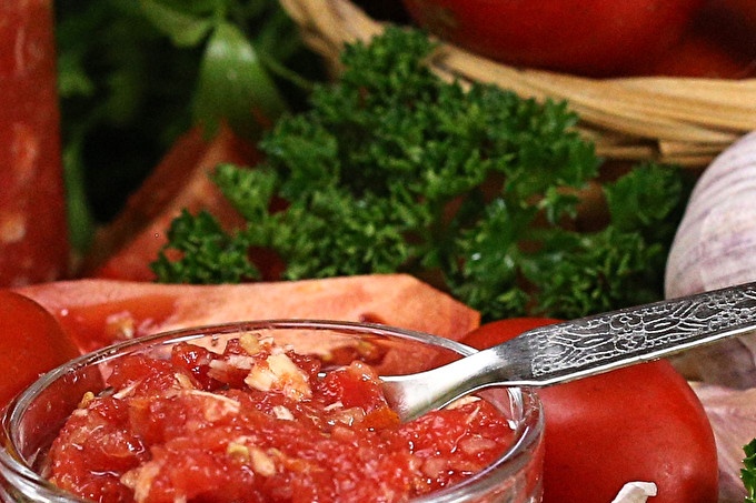 Горлодер от домат с чесън и хрян, вкусен и пикантен!