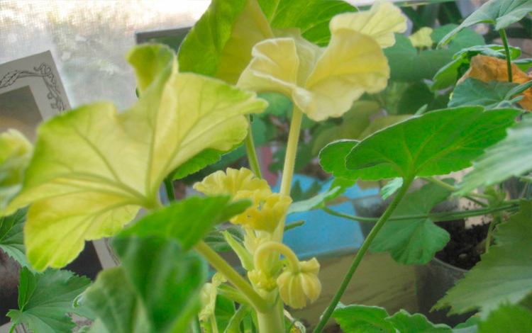 - Когато, в допълнение към пожълтяване, пеларгониевите листа се свиват по ръбовете, липсва цинк.