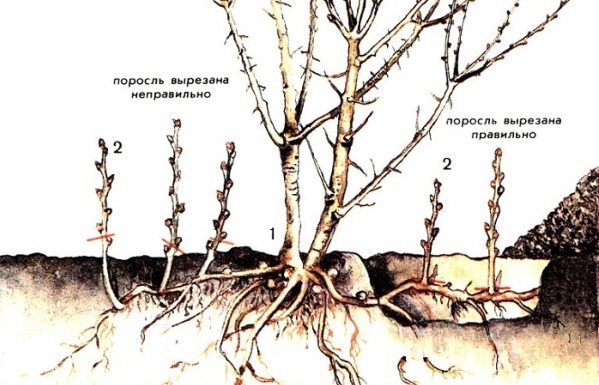 - Подстригване с нож - отстранете издънките под нивото на земята. Секциите на разфасовките се обработват от бодли. Също така премахнете издънките, които се появяват в ствола на дървото.
